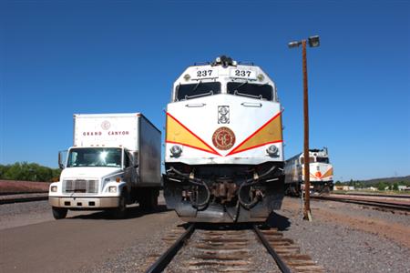 早朝から出発準備を進めるグランドキャニオン鉄道【拡大】