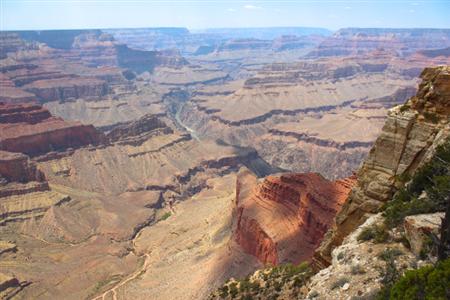 “国立公園の宝庫”といわれ、手つかずの壮大な景観が息づくアメリカ・アリゾナ州のなかでも、一生に一度は行きたい憧れの公園といえば「グランドキャニオン国立公園」。500~600万年とも推測される、気の遠くなるような年月をかけてコロラド川が浸食した赤い大地は、長さ446km・深さ1800mにも達し、もはや人智など到底及ばない宇宙の惑星のように圧倒的なスケールのパノラマを誇る。