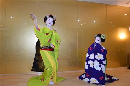 36席の小さなシアターは舞台と客の距離が短く、舞妓の舞踊を目の前で鑑賞できます。記念撮影、茶席でのお点前披露に食事とお座敷気分を味わえます。