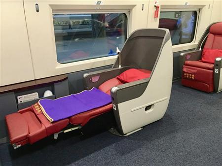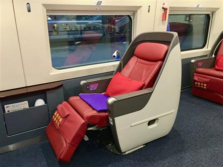中国高速鉄道の最上位座席である「商務座(ビジネスクラス)」は、そのシートのすばらしさで鉄道ファンの話題を集めた。通路を挟んで右が1席、左が2席。プライバシーに配慮して、背もたれはシェル型になっている。ちなみに一等車は通路を挟んで2席ずつで横一列に4席、二等車は通路を挟んで2席と3席で横一列に5席が並ぶ。