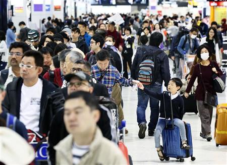 東京入国管理局は12日、ゴールデンウイーク期間中(4月28日~5月7日)の成田、羽田両空港の出入国者数(速報値)を発表した。成田は前年同期比約10.9%増の約81万8千人で、過去5年で最多。羽田も約14%増の約44万3千人だった。