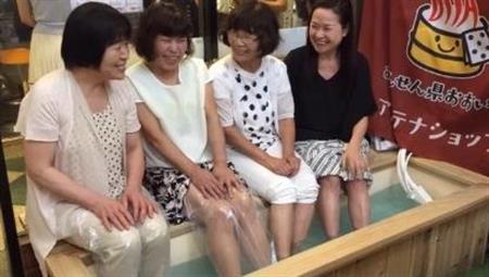 埼玉県から来た看護師グループは「ソフトは口の中でふわっと甘さと酸味が広がる」「足湯で全身がぽかぽか。大分にいってみたくなった」と満足そう。