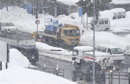気象庁によると、13日夕までの24時間で、新潟県や福井県では40~60センチの雪が降った。大雪が続いた東北から中国の日本海側で平年の3~10倍の積雪となり、北海道幌加内町の幌加内で279センチ、山形県大蔵村の肘折で438センチ、福井県越前市の武生で130センチなど、5カ所の観測点で観測史上最大を記録した。