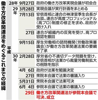 昭和22年に制定された労働基準法の約70年ぶりの大改正となる働き方改革関連法は、これまで“青天井”だった時間外労働(残業)の上限を決め、違反に罰則を設けたことが特徴だ。繰り返される過労死の歯止めとなるか。