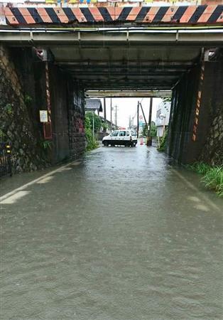 滋賀県長浜市では冠水により、県道が一時通行止めとなった(県道路課提供)【拡大】