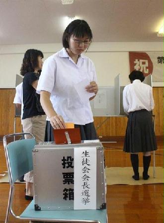 生徒ら約50人は候補者の演説を聞いた後、事前に配布された入場券を片手に投票所に向かい、受付で投票用紙を受け取ると、思い思いの一票を投じた。投票所の事務は同分校の選挙管理委員の生徒が務めた。