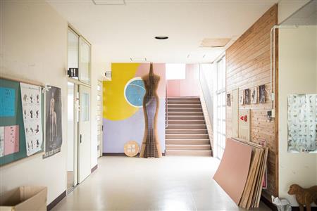 大分県国東市。空港から少し離れるだけで、周囲は緑濃い山々と田園が織りなすのどかな景色に変わります。車に乗って30分ほど。聞いていた住所に到着すると、そこには小学校がありました。そう、この廃校になった小学校を拠点に「FLATS」を製作する国東時間株式会社は運営されているのです。
