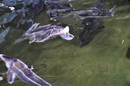 豊根村は、医療や農水産業への低温プラズマ技術の応用を研究している名古屋大学プラズマ医療科学国際イノベーションセンター長の堀勝教授に研究フィールドを提供。現在5メートルほどの大きさの水槽に低温プラズマ処理した水を入れ、体長50センチほどのチョウザメの幼魚50匹を養殖。その成長の変化を調べている。