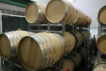 ワイナリーに入れてもらった。ブドウの香りがほのかに漂っている。オーク材のたるが所狭しと積み上げられていて、よく見るとたるにはめられた金属製のタガには「PN」とか「Me」とか記された白色の用紙が張ってある。
