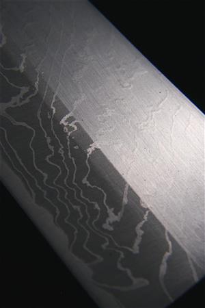 山口さんは包丁作りでも新たな試みに取り組んだ。一般的な和包丁の模様「墨流し」以外のものを作り出せないかと、インドのダマスカス鋼の模様をヒントに15年前に「雷(いかづち)」模様を作り出した。雷模様が作れるのは山口さんと息子の大仁さんだけ。ただ、敢えて特許を取っていない。「この模様を出せるならご自由に」という言葉には、2年間の試行錯誤の末に生み出した技術への自信とともに、鍛冶技術の発展を願う心もありそうだ。