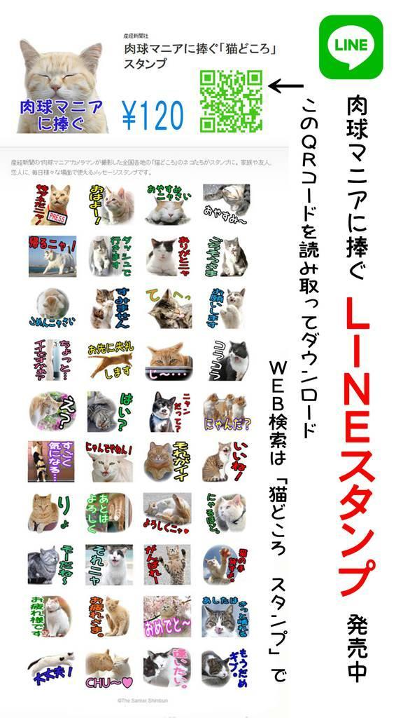 産経新聞写真報道局のサイト「産経フォト」で不定期連載中の「肉球マニアに捧ぐ」に掲載された猫たちの写真が、無料通信アプリLINE(ライン)用スタンプになりました。