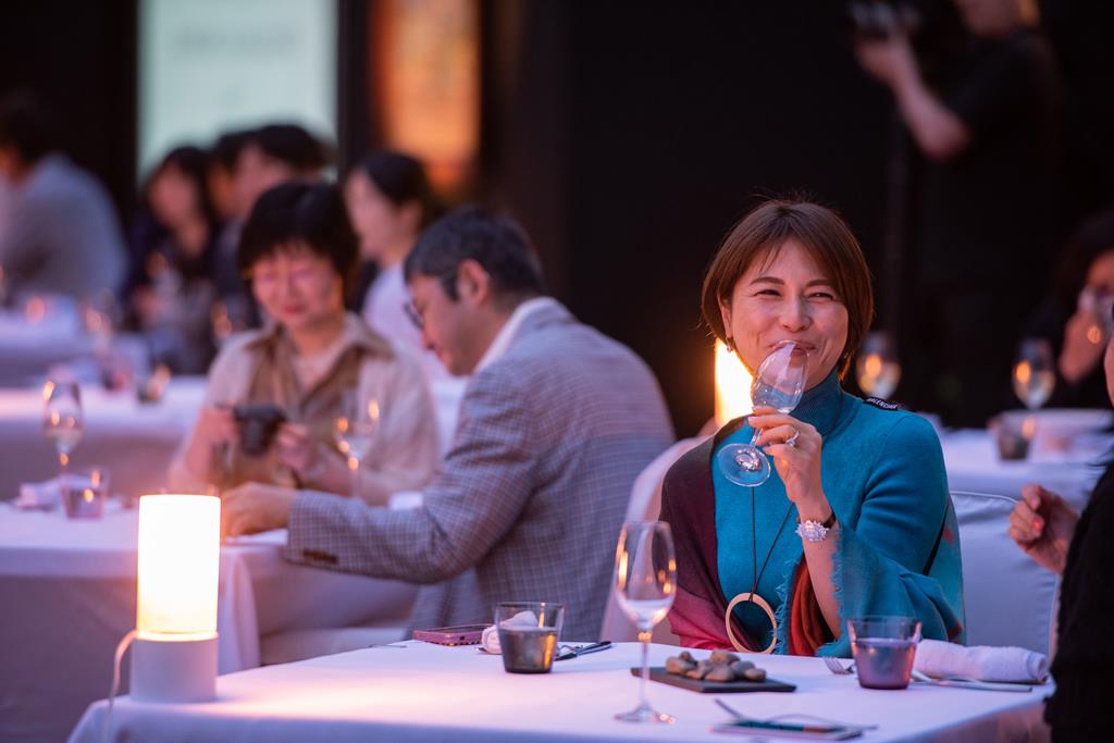後席の窓から自然豊かな景色を眺めながら、青森県出身の運転手さんと会話を楽しむこと約30分。送迎車が、真っ白いモダンな建物の裏手にある車寄せに停車した。そこにはすでに、シャンパングラスを片手に談笑する先客の姿がある。その後も続々と車が乗りつけては、様々な装いの男女を降ろしていく。気づけば20台超のレクサスが駐車場を占拠するという、何とも圧巻の光景が広がっていた。