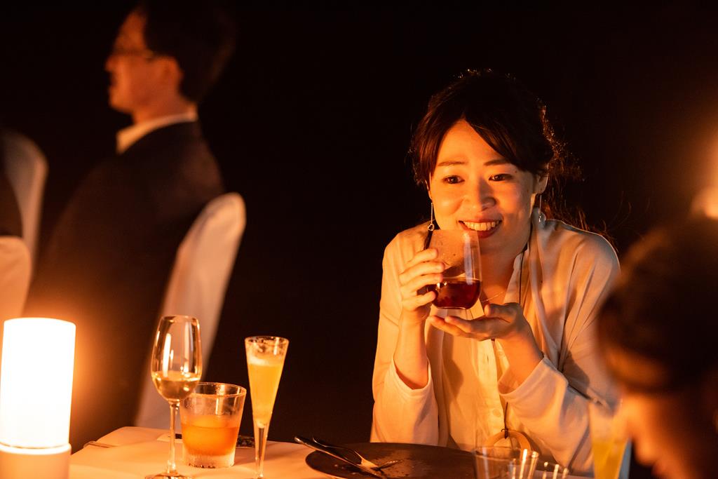ほどよく感性を刺激されると、再び送迎車に乗り込んだ。次の目的地はいよいよ、浅虫温泉の“どこか”で我々の到着を待っているディナー会場のようだ。一体どのような場所なのだろうか-。心地よい波音が漂う浜辺、ランタンの明かりが点々と燈るキャンプ場、はたまた高級老舗旅館の屋上…。勝手な想像で描いた会場のイメージが、頭の中をスライドする。
