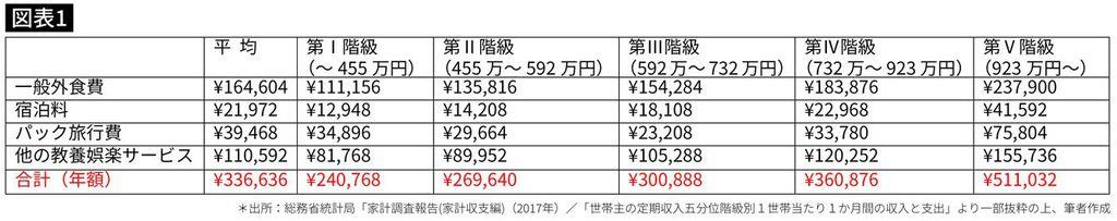 とくにレジャー費のように、月によって大きく変動する支出は、月額ではなく年額で予算管理することをお勧めする。以下の図表は、総務省の家計調査(2017年)の外食費や宿泊料、レジャー施設への入場料など、家計に占めるレジャー費(年額)を年収別に整理したものである。