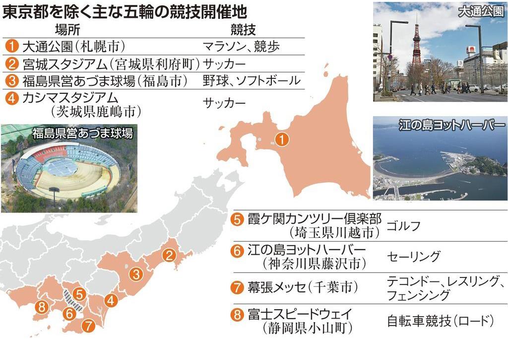 東京以外で五輪競技が行われるのは、北海道、宮城県、福島県、茨城県、埼玉県、神奈川県、千葉県、静岡県、山梨県の9道県。各会場では、パラリンピックの開催も視野にバリアフリーなどの工事が進む。