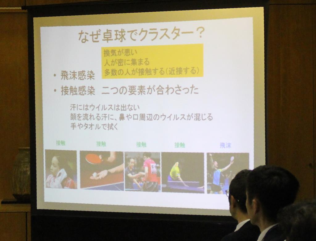「飛沫(ひまつ)感染と接触感染が合わさった」。新潟市保健所感染症診査協議会の委員を務める斎藤教授は6日、同市役所で開かれた対策会議で、卓球教室でクラスターが起きた理由をこう説明した。
