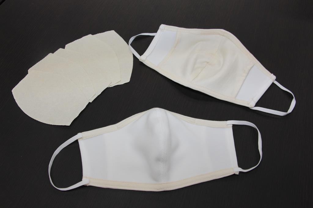 型紙や布の合わせ方、ひもの長さなどを変えて着け心地を確かめ、試行錯誤を重ねた。そうして素材は表面にポリエステル、口が当たる裏面にはオーガニックコットンを採用。和紙を間にはさみ込み、マスク本体は洗って繰り返し使ってもらう仕様にした。
