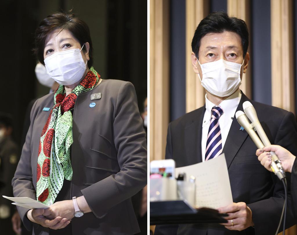 小池知事は西村担当相との会談に先立ち、報道陣に「(協議は)週末を越えないようにする」と強調。都は交渉が不調に終わった場合、特措法に基づかない独自の休業協力要請も選択肢に入れていた。休業などに応じた事業者に対する協力金制度の具体化を急いでおり、1事業者当たり数十万円とする案が出ている。
