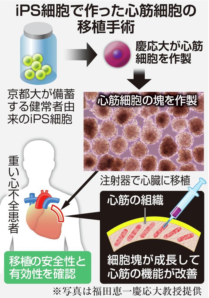 計画によると、京都大が備蓄しているiPS細胞から心筋細胞を作製。約千個をひとかたまりの球状に加工し、計約5千万個を特殊な注射針で心臓に移植する。移植後に心臓の一部として成長し、心機能の改善が見込まれるという。