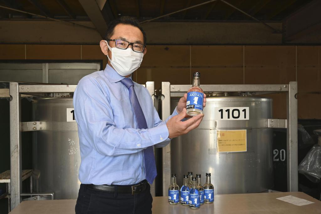 計画から約1カ月で製品化にこぎ着けた。1本300ミリリットルで、アルコール度数が75%の「AKITA75」(800円)と67%の「AKITA67」(759円)の2種類。計1万7千本を製造予定で、一般の人も県内の一部酒店などで購入できる。