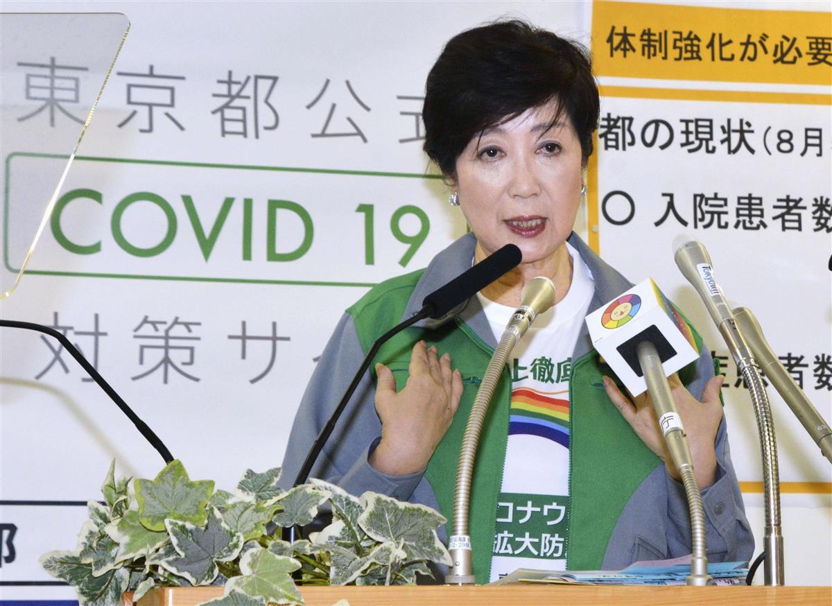 「高齢者と同居している場合、家の中でも長時間の会話をする時はマスクの着用をお願いしたい」。小池百合子知事は6日、増加傾向をふまえ、家族間で食事の時間をずらしたり、タオルなどの日用品を分けたりする細かい工夫を求めた。
