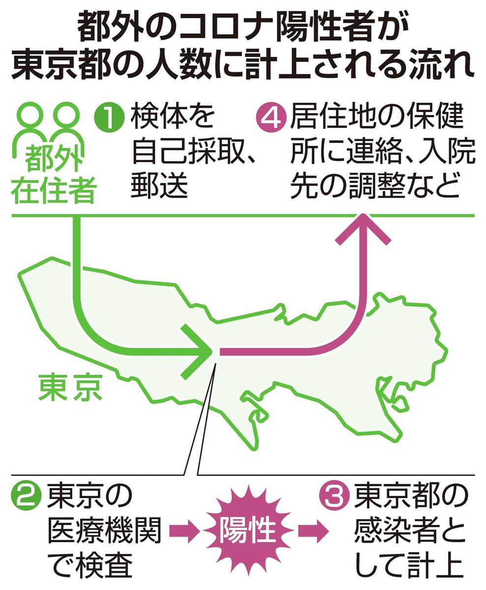 都内の保健所は、こうした感染者の情報を居住地の保健所に引き継ぐ。感染経路の調査などは居住地で行われるため「調査漏れ」は起きないが、都幹部は「このまま数字が積みあがっていくと、表に出る感染者数が実態と乖離する恐れがある。住民の警戒意識に影響しかねない」と懸念する。