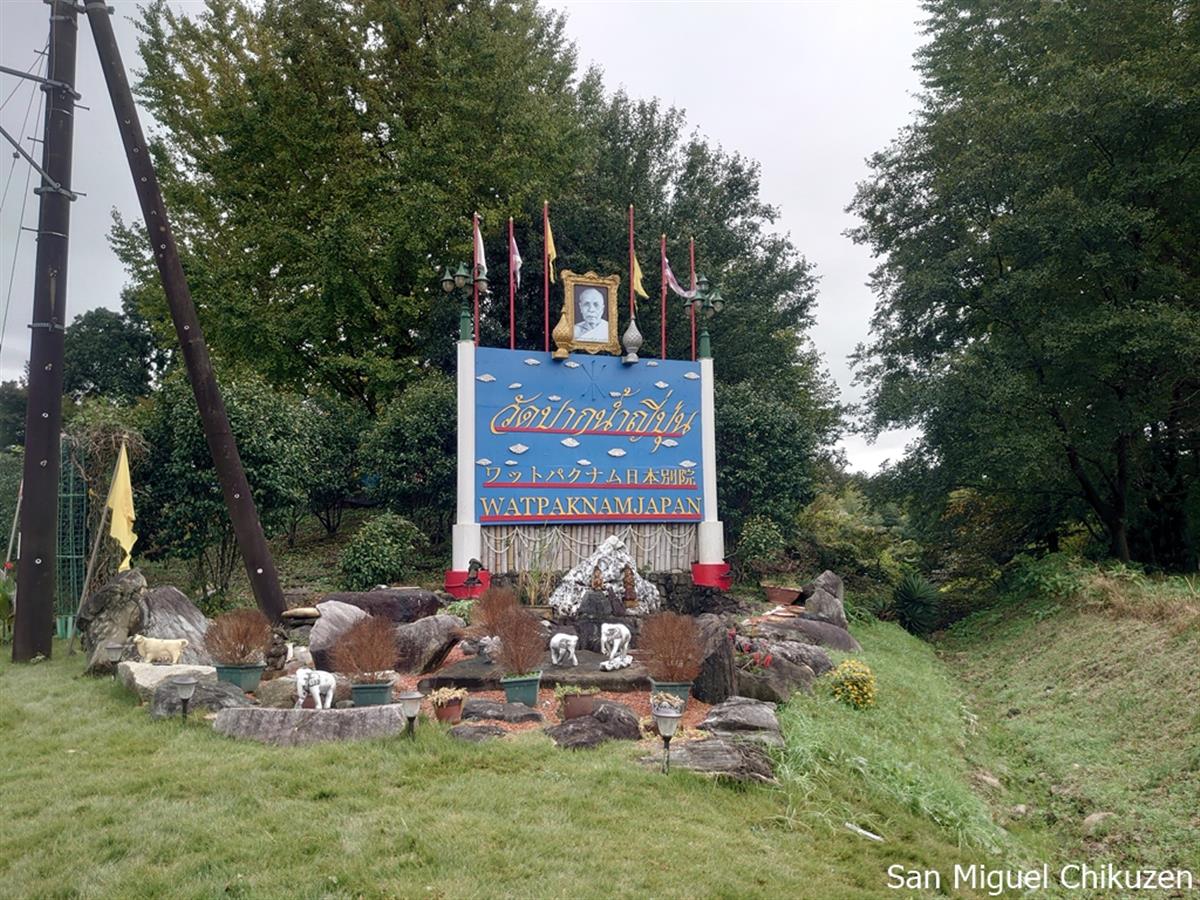 成田国際空港から11キロメートルほどの田畑が続く郊外にネイビーに近い濃い青色の屋根の建物が目に飛び込んでくる。周辺と不釣り合いなほど異彩を放つ建物へ向かうと「ワットパクナム日本別院」の看板が出迎えてくれる。