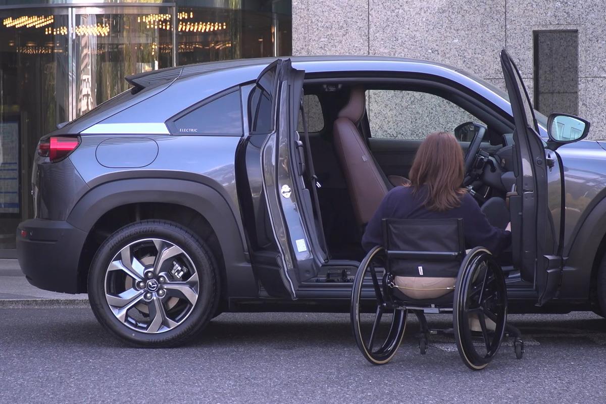 さらに、観音開きが有効なのは「車いすの積み込み」である。リアのドアが前方向に開くばかりか、電動式に改良されている。これによって、運転席に乗り込んだのちに、重く大きな車いすを助手席に積み込む必要がなくなかった。後席に載せることで対応できるのである。このメリットは無視できない。観音開きのMX-30ならではの魅力であろう。