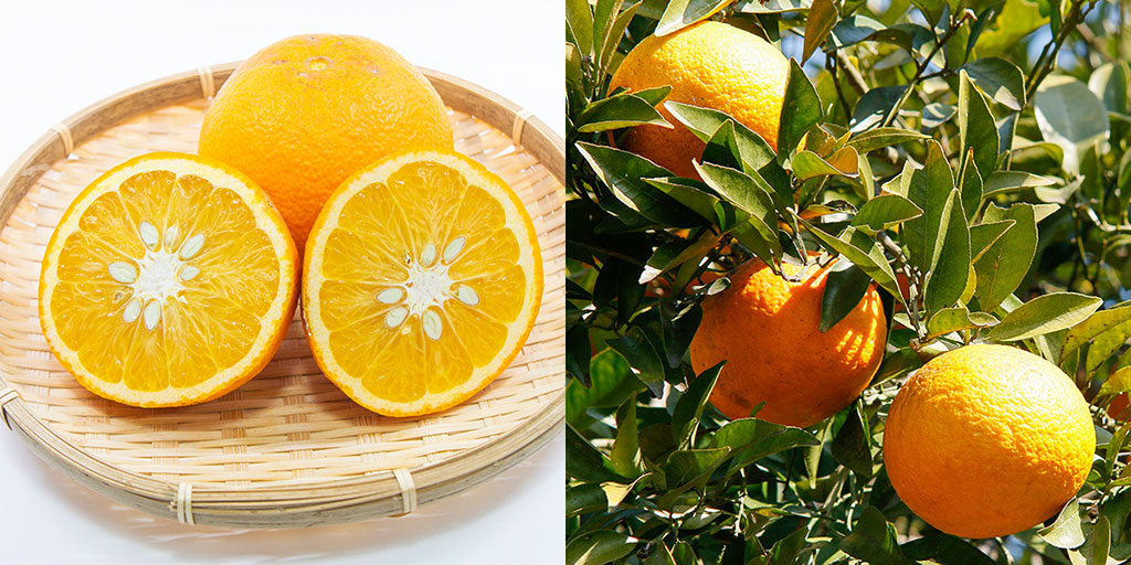 「日向夏(ひゅうがなつ)」は、他の柑橘類と違い、白い内果皮(アルべド)と果肉を一緒に食べることで食物繊維を摂ることができる人気の品種です。味わいはグレープフルーツより酸味が少なくさっぱりしています。ふわふわとした白い内果皮は甘みがあることで、酸味のある果肉と一緒に食べるとちょうどよい美味しさになり、他の柑橘類にはない独特の風味を味わえます。