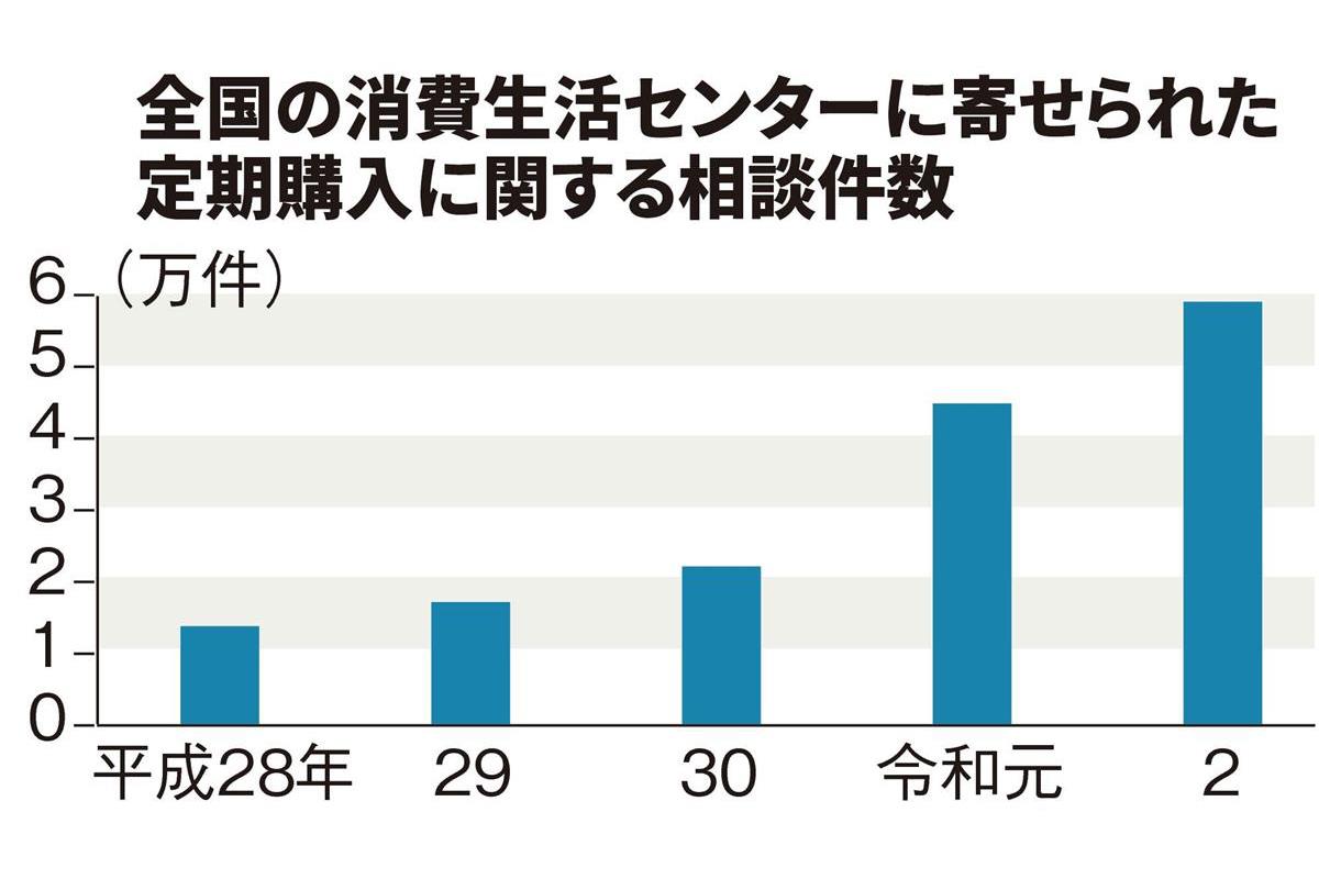 インターネット通販のトラブルに関する消費生活センターへの相談が昨年、過去5年で最多となったことが分かった。特に増えているのが悪質な「お試し商法」に関する相談で、新型コロナウイルスの感染拡大による「巣ごもり需要」の高まりが背景にあるとみられる。消費者庁は注意を呼び掛けており、特定商取引法の改正などの規制強化に乗り出す構えだ。(吉沢智美)