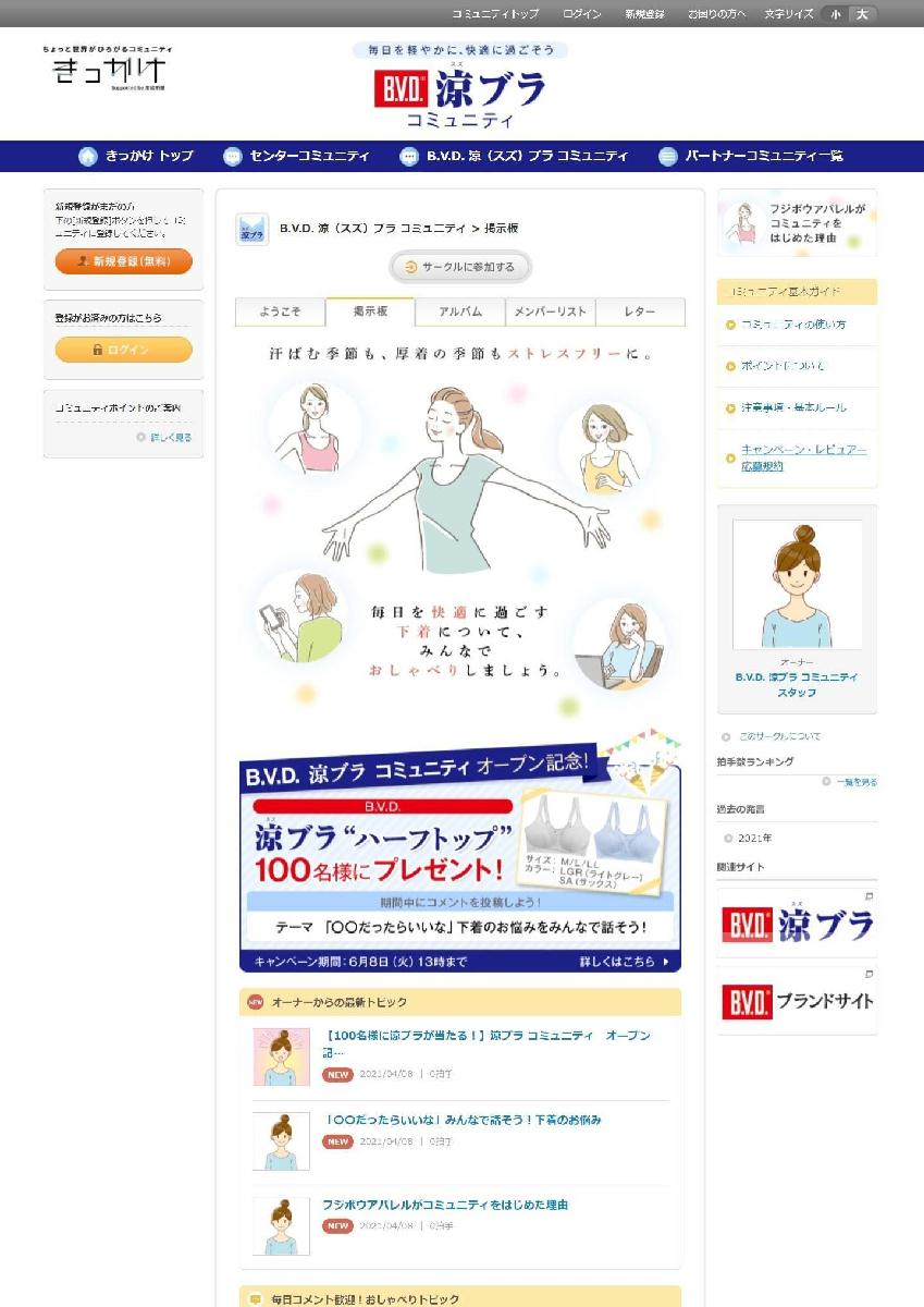 産経新聞社がインターネット上で運営するファンコミュニティ「きっかけ」内に、新たに「B.V.D. 涼ブラコミュニティ」がオープンした。産経新聞社とファンコミュニティ構築・運営大手のクオン(東京都港区)、富士紡グループのフジボウアパレル(同中央区)の3社が共同で開設・運営を行う。会員登録は無料。