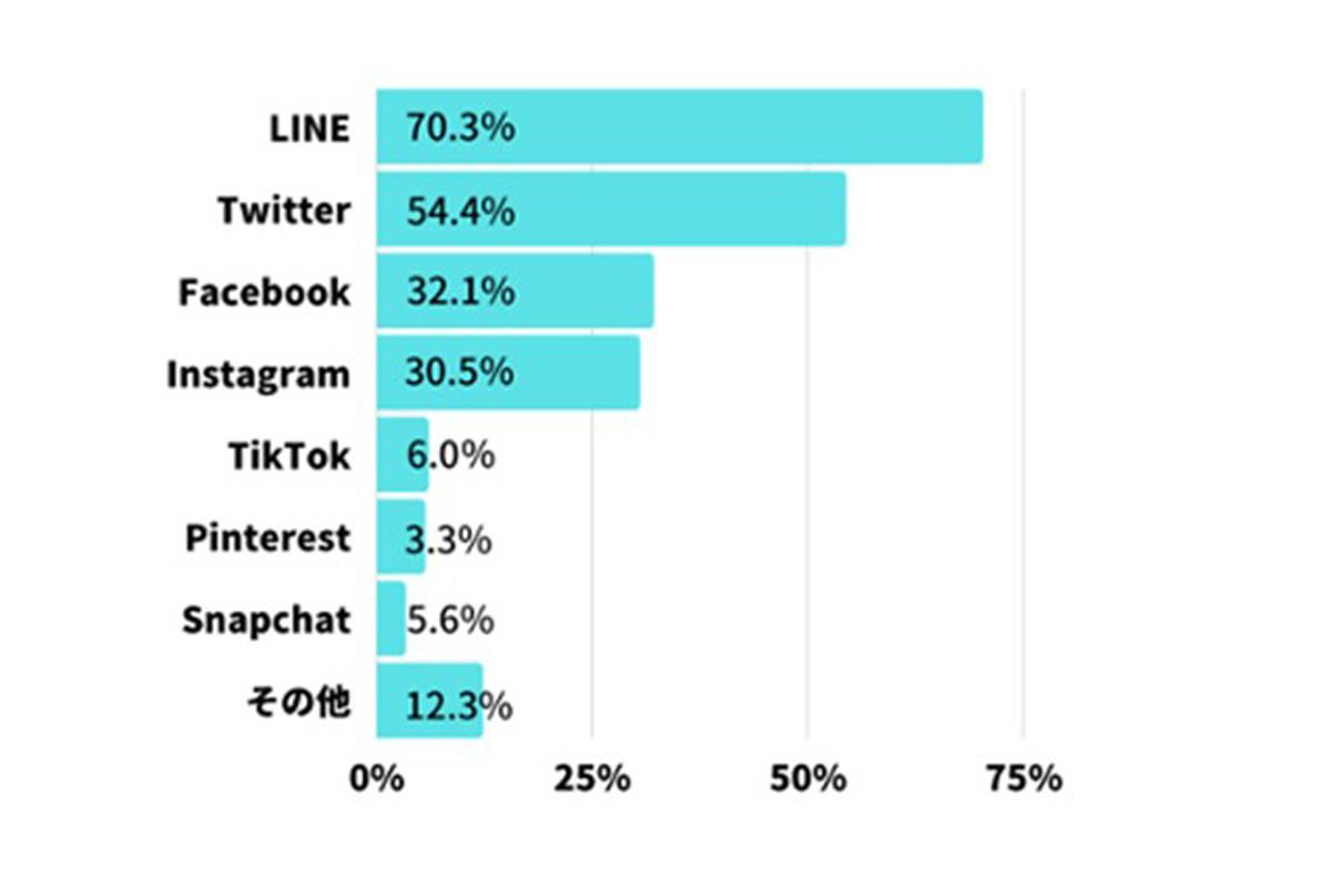 アンケート調査は今年1月、10代~50代の男女750人を対象にインターネットで実施。現在使用登録しているSNSアプリの種類を尋ねたところ、LINEが70.3%と最多で、続いてTwitterが54.4%、Facebook(フェイスブック)が32.1%、Instagram(インスタグラム)が30.5%と続く結果に。多くの人がLINEを利用している状況が分かった一方で、短い文章で気軽につぶやくことができるTwitterの人気も根強いことがうかがえる。