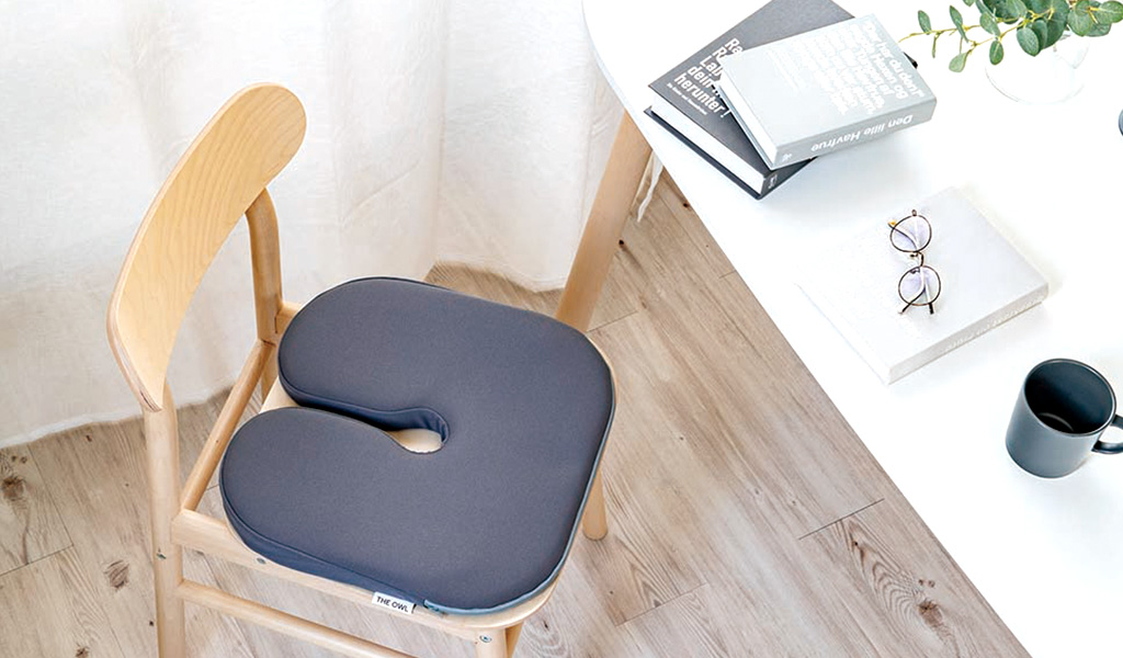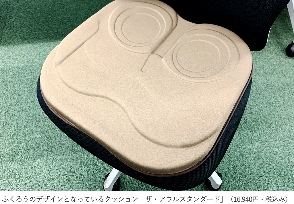 そんなふくろう型のクッションが、お尻をやさしく包み込み、座ったときに生じる衝撃を緩和。目の部分に座骨を合わせて座ることで、正しい姿勢に導きながら、長時間お尻を守ってくれる。今回、登場から人気を集め、現在は改良を重ねた5代目が発売されている「ザ・アウルスタンダード」を記者も試してみた。