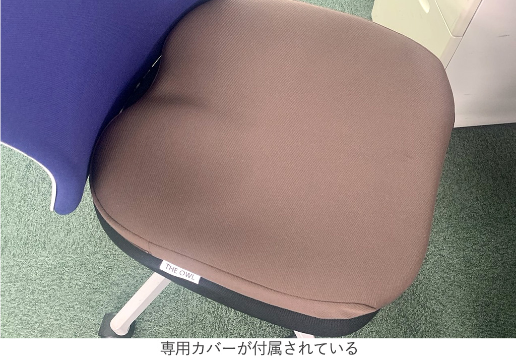 高い機能性をもつ「ザ・アウルスタンダード」は、カバーを外すとかわいらしいふくろうの模様が姿を現す。このデザインは、座ったときのお尻の負担を軽減、圧力を分散するように緻密に設計されているのだ。