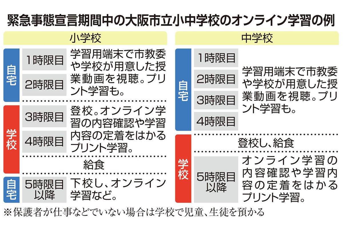 緊急事態宣言の発令に合わせ、大阪市立小中学校で4月26日から始まったICT(情報通信技術)を活用したオンライン学習。大阪府は府内の市町村に対面授業の継続を要請しているが、感染拡大状況が深刻な同市が独自で実施に踏み切った格好だ。ただ、ICT導入が進む学校で早速オンライン授業が始まった一方、いつ始まるかも不明な学校もあるといい、「学習の格差が広がるのでは」と懸念する声も聞かれた。