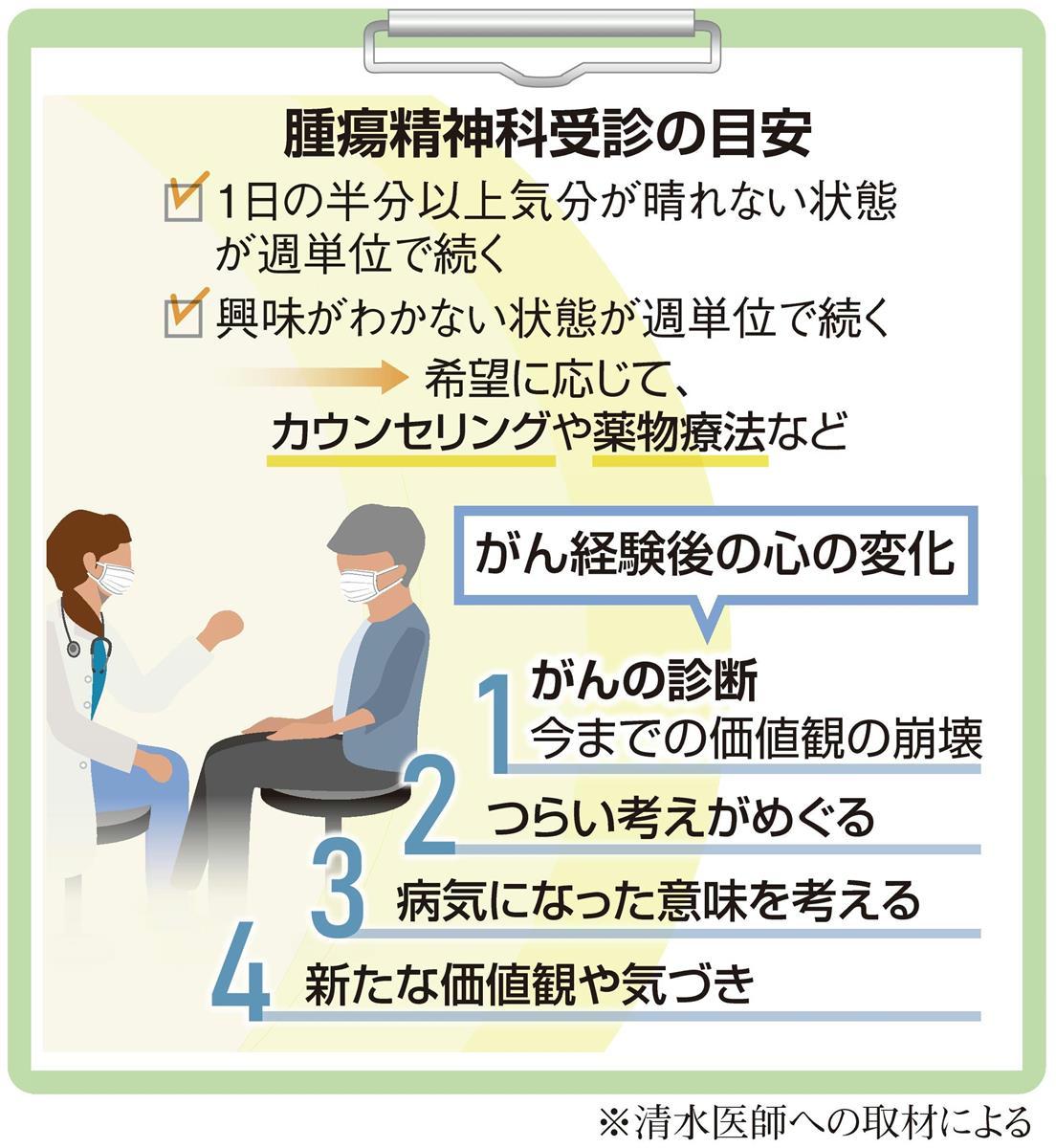 A がんという病気を熟知している精神科医や心療内科医が診察にあたっています。精神腫瘍科と標榜(ひょうぼう)しているところもあります。患者さんのなかには一般のクリニックを受診したとき、「がんのことはよく分からない」と言われてしまった人もいるようです。