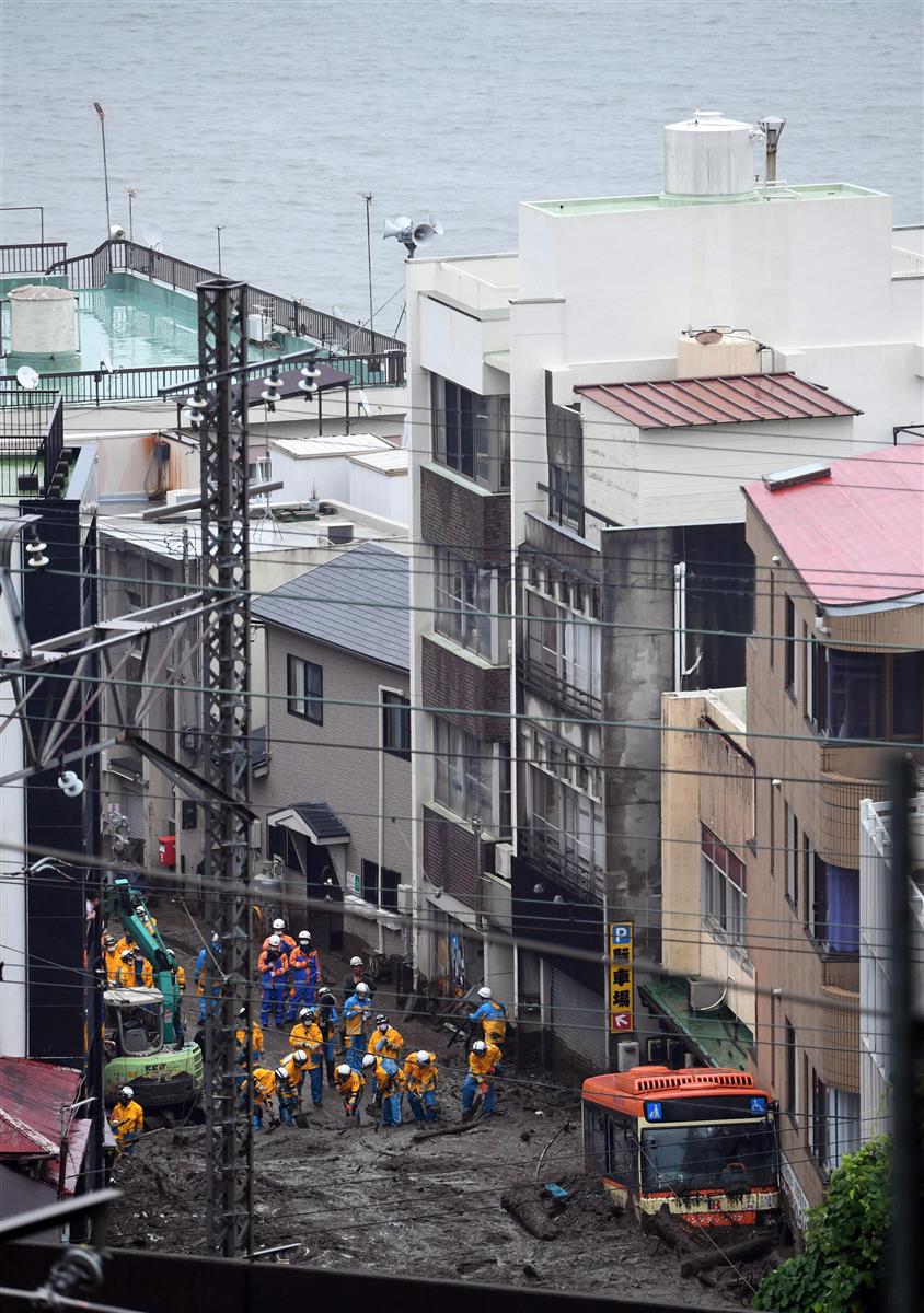 大雨で多数の家屋が流された静岡県熱海市の現場周辺は、県が土石流の発生する恐れのある「土石流危険渓流」に指定していた。斜面が急で地質も水を含みやすく、大雨が降れば土石流が発生しやすい悪条件が重なっていたという。長時間降り続いた雨で地盤の緩んだ状況は当面、続くとみられ、気象庁は雨がやんだ後も警戒を呼びかけている。