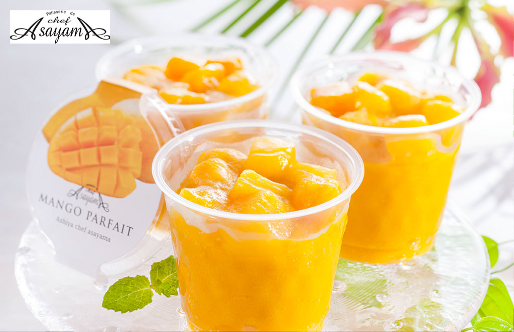 第10回日経レストランメニューグランプリを受賞した神戸(芦屋)で人気のパティシエ、朝山 末男氏がプロデュースした、芦屋シェフ・アサヤマ洋菓子工房 芦屋マンゴーパフェ(7個入)を、税込み3,580円(送料500円、軽減税率対象)で販売します。マンゴージェラートの上にたっぷり果肉が乗った豪華なマンゴーパフェです。