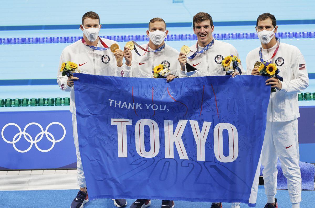 東京五輪の競技最終日を迎えた競泳で1日、心温まるシーンがあった。全レースを締めくくった男子400メートルメドレーリレーを世界新記録で制した米国チームが、表彰式後、「THANK YOU TOKYO」と記された青いフラッグを掲げて場内を練り歩いた。米国チーム全体の発案といい、今大会5冠を果たしたエースのケーレブ・ドレセル(24)は「18カ月前、私たちがこの場にいられると想像もしなかった。バスの運転手から清掃員まで、全ての人が大会実現のための重要な役割を果たしてくれた。私たちがここに来られたことをありがたく思っている」と開催に謝辞を述べた。