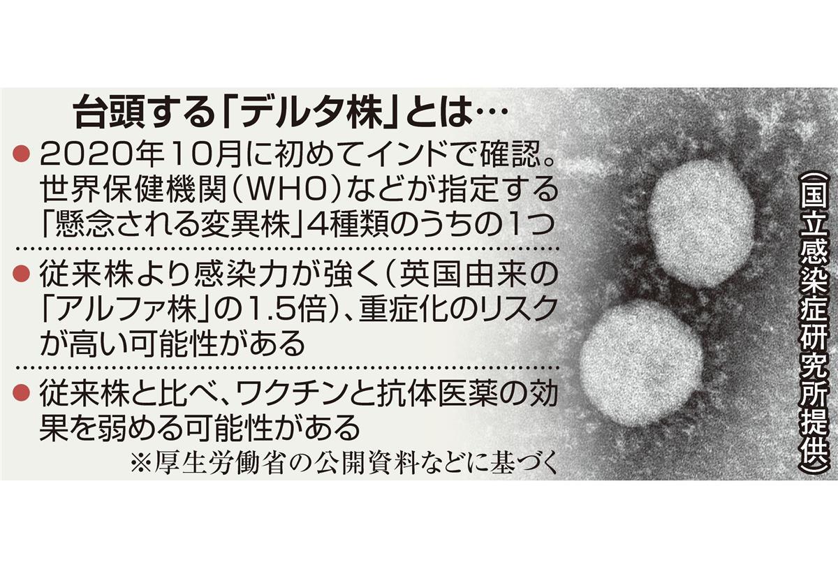 デルタ株は、従来株に比べて感染力が強いとされた英国由来の「アルファ株」よりもさらに1・5倍感染しやすく、重症化リスクも従来株より高い可能性が指摘されている。国立感染症研究所などの試算では、首都圏の陽性例のうち、デルタ株の割合は増加し、8月中にはほぼ同株に置き換わると推定されている。
