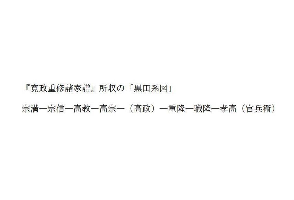 最初に確認するのは、「近江佐々木源氏出自説」である。その根拠となっているのは、『寛政重修諸家譜』と『黒田家譜』である。