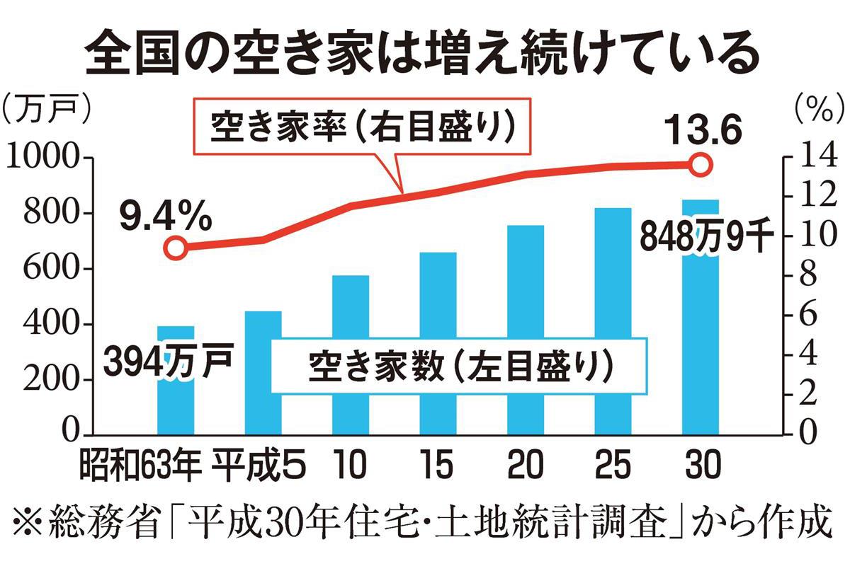 野村総合研究所が昨年6月発表した住宅市場分析では、空き家の撤去が進まなかった場合、令和20年の全国の空き家率は30・5%になると試算している。