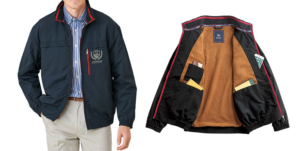 「ダンロップ・リファインド 7ポケット裏ベロアブルゾン」(7,689円)は、衿の配色が効いたスポーティなデザインのブルゾン。表側には3つ、内側には4つの合計7ポケットで収納力も抜群です。裏面は毛足が長く柔らかなベロア素材で軽快な着心地と保温性を両立。表地には急な雨にも安心なはっ水加工を施しています。気軽に羽織れて秋口から冬、春先までロングシーズン活躍するアウターです。