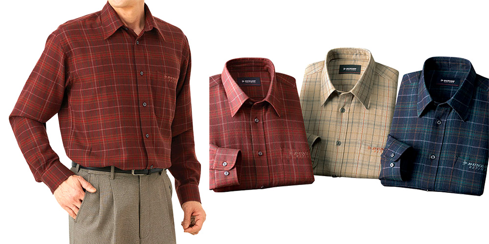 「ダンロップ・リファインド やわらかチェック柄シャツ 3色組」(1万4,190円)は、ソフトで肌ざわりの良い起毛素材で仕立てたシャツ。多色使いの鮮やかなチェック柄は、流行に左右されにくい秋の必須アイテムです。便利な胸ポケット付き。胸ポケットのロゴ刺しゅうがアクセント。消臭テープ付きなので、気になる臭いも安心です。