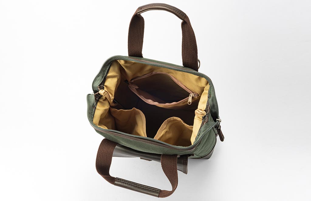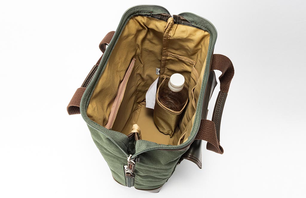 大事な収納面でも、改良を重ねました。商品は口がガバッと開く「ダレス式」を採用。大きく開いた状態をキープできることから、中身が見やすく、荷物が出し入れしやすい構造になっています。そして、サイズをオリジナルよりやや大きくし、A4サイズのものを入れられるように改善しました。