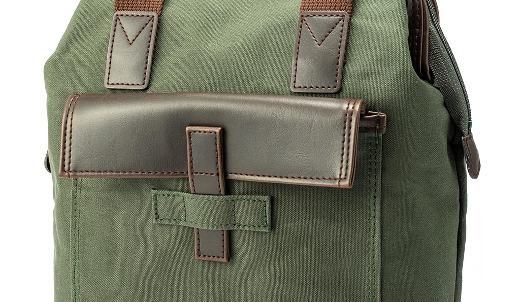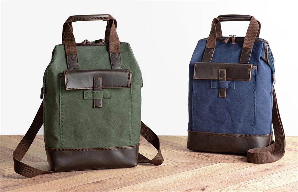 「3WAYダレスバッグ」は、産経ネットショップで過去に約1000個を販売し、惜しまれつつ販売が終了した商品の別注。ユーザーの意見が取り入れられており、改良されたポイントは6カ所に及びます。まずは、生地パラフィン加工した10号帆布を使用。トラックの幌などに使われるこの生地を使用することで、全体的に張りが生まれ、頑丈で型崩れしにくいデザインになっています。撥水加工も施されており、雨や汚れを気にせず、思い切り使用することができそうです。また、この生地は、デニムのように時間とともに風合いが変わることで知られ、その変化を感じるのもひとつの楽しみになっています。