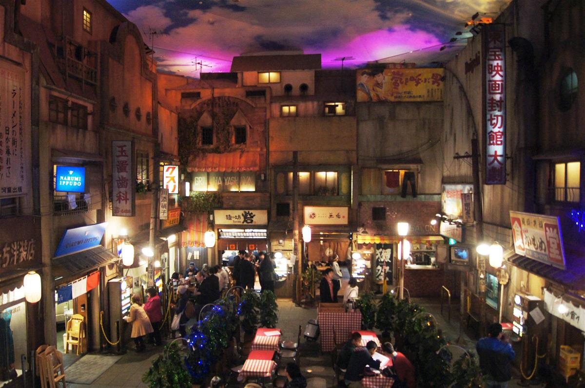 1994年3月6日午前11時、新横浜ラーメン博物館が開業。全国から厳選した8店舗が軒を連ねるラーメン集合施設の走りだが、こちらのコンセプトは「五感で味わうラーメン文化」。館内は「チキンラーメン」誕生の年である1958年(昭和33年)の下町を目指し、往年の映画ポスターや電話ボックス、都電の駅などを忠実に再現した。