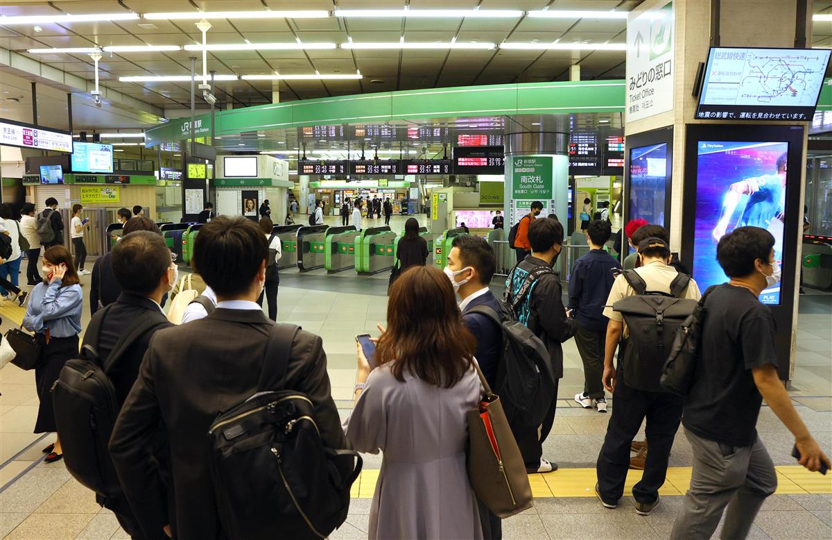 震度5強=川口三ツ和、宮代(埼玉)足立伊興(東京)▽震度5弱=さいたま緑区、川口、蕨、吉川(埼玉)千葉船橋、流山(千葉)羽田空港、大田多摩川、足立神明南(東京)馬場、横浜、日吉、川崎中島(神奈川)など