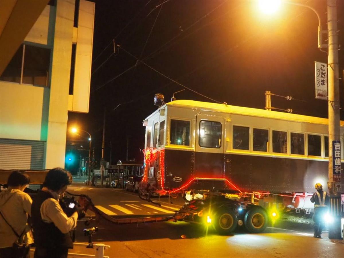 香川県の高松琴平電気鉄道(ことでん、高松市)が保有していたレトロ電車ですでに引退していた5000形500号が高松市の建設会社に譲渡されることが決まり10月13日未明、一般道路を使って車体が移送された。ことでんは、大正末期から昭和初期に製造された4両のレトロ車両を保有。90年以上にわたり運行されて地元住民や鉄道ファンらに愛されてきたが、2年前に「順次引退」が発表されていた。レトロ車両は解体する構想もあったが、譲渡先などが決まり、それぞれが静かな余生を送ることになった。