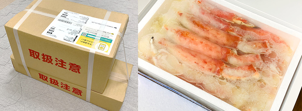 ちなみにカニを食べるときは「手をふくハンドタオル」「キッチンバサミ」「カニ用のスプーン・フォーク」「殻やごみを入れる器」をテーブルの上に用意すると便利です。また、注文する際は、冷凍庫に十分なスペースを確保しておきましょう。